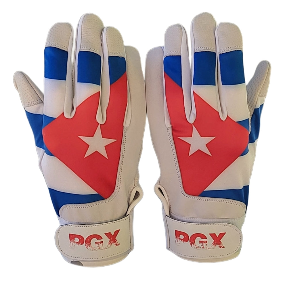 PGX offers Cuba baseball batting gloves, so you can show off your Cuban pride! Not only do these gloves display a striking graphic, they’re made with premium-quality materials, too. Get your own Cuba baseball batting glove today! Compliment your game by sporting batting gloves that look as unique as you’re playing style and intimidate your opponents with flare while you’re at it! Built with lyric spandex backing for a soft and comfortable feel Palms are made with pitted leather for superior grip and durability Unique, original pattern and design to add confidence to your game Look good, feel good play good.